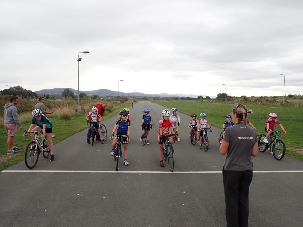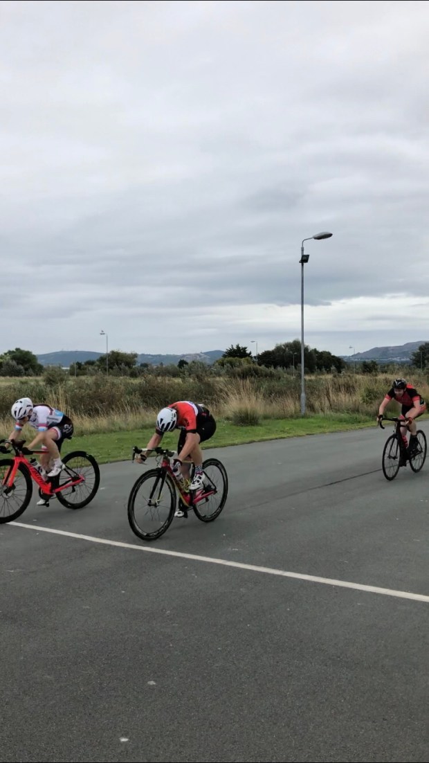 Then it was time for the busiest race of the day for the U12, U10 and U8. 13 girls took to the track and for many it was their first time. They raced round the shorter version of Marsh Tracks and were getting cheered on by their parents at the side of the track. Girls from Hafren CC and North Cheshire Clarion has a strong presence at the race and definitely represented their clubs well. Many keen to learn more about road racing and tactics used by the pro’s!